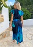AX Paris Navy Bold Floral Print Flutter Sleeve Belted Wrap Midi Dress