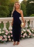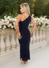 AX Paris Navy Lace One Shoulder Ruched Skirt Midi Dress