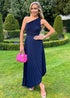 AX Paris Navy One Shoulder Cut Out Pleated Midi Dress