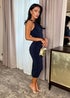 AX Paris Navy One Shoulder Ring Detail Ruched Bodycon Midi Dress