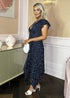 AX Paris Navy Polka Dot Print Wrap Top Zig Zag Hem Pleated Midi Dress