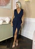 AX Paris Navy Wrap Top Knot Front Split Skirt Midi Dress