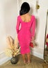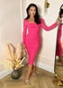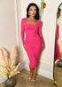 AX Paris Pink Square Neck Long Sleeve Ruched Bodycon Mesh Midi Dress