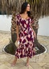 AX Paris Purple Animal Print Puff Sleeve Smock Midi Dress
