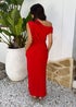 AX Paris Red Off The Shoulder Double Split Midi Dress