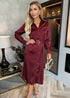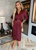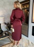 AX Paris Wine Satin Belted 3/4 Sleeve Gold Buttons Shirt Midi Dress