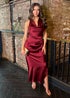 AX Paris Wine Satin Cowl Neck Cross Back Midi Dress