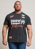 Badrhino Black Acid Wash Printed Castrol T-Shirt