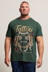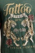BadRhino Green Acid Wash Tattoo Tiger Graphic T-Shirt