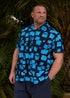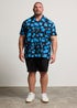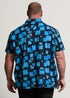 BadRhino Navy Blue Square Print Short Sleeve Revere Collar Shirt