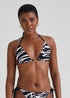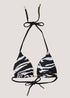 Learn moreFeel young, wild and free at the beach or pool with this chic bikini top. Styled with a striking zebra print in a signature mix of black and white, this soft and stretchy piece comes with practical tie detailing that's completed with sleek gold metal trims for added interest. Coordinate with the matching bikini bottoms S2950259_C101. Model Height: 5ft 8.