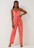 Learn moreA statement style for summer evenings, this gorgeous Be Beau jumpsuit is sure to make you look and feel fantastic. Cut wide on the legs with a belted waist for a cinched-in fit, the jumpsuit is styled with an uber flattering cowl neck, slim cami straps, and a stunning pink floral print on an ochre base. Team with your favourite pairs of heeled sandals and get ready to hit the town!