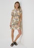 Beige Leaf Print Linen Dress