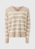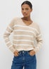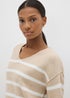 Elevate your casual look with our Stripe V-Neck Jumper in beige. Featuring a classic striped pattern and a flattering V-neck, this soft, cosy jumper is perfect for layering or wearing on its own. Ideal for everyday wear, it adds a touch of effortless style to any outfit. Layer it under a blazer for added warmth and style.