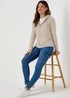 Stay cosy and comfortable in this timeless beige hoodie. Crafted from a soft fleece-lined fabric, it features a zip-up front for easy layering and is finished with a drawstring cord for added warmth.