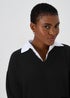 This versatile piece combines the classic appeal of a black jumper with the sophistication of a white undershirt and collar, creating a stylish layered look. The contrasting elements add a touch of modern flair, making it a perfect choice for both casual and semi-formal occasions.