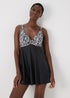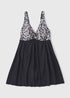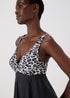 Be the belle of the beach or pool in our stunning Black Animal Print Swim Dress. This eye-catching one-piece swimsuit features an intricate animal print that's sure to turn heads. Featuring a structured cup design and a flowing black skirt silhouette. This flattering one piece design has a comfortable fit, you'll feel confident and stylish all season long. Pair it with a sunhat and sandals for a chic beach look