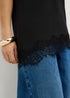 Black Asymmetric Lace Trim T-Shirt