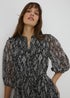 Learn moreDiscover our Black Aztec Print Chiffon Mini Dress and add a touch of bohemian flair to your wardrobe. This mini dress is crafted from lightweight chiffon fabric, featuring a striking Aztec-inspired print in elegant black. The loose, flowy silhouette flatters all body types, while the ruffled hemline and V-neckline add a touch of feminine charm. Dress it up for a night out with strappy heels and a statement necklace or keep it casual for a daytime look with sandals and a wide-brimmed hat.