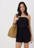 Learn moreA versatile wardrobe essential, this black bandeau playsuit is perfect for any occasion. Crafted from a soft and comfortable fabric, it's designed for a relaxed fit. The sleeveless design and scoop neckline create a flattering silhouette, while the strapless design is perfect for summer days.