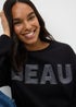 Bring a little glamour to your everyday with the Black Beau Embellished Sweatshirt. Crafted from soft, cozy fabric, this relaxed-fit sweatshirt features elegant embellishment detailing that adds a subtle sparkle to your casual wardrobe.