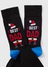 Celebrate your dad in festive style with the Men's Black Best Dad Santa Socks. These cozy socks feature a cheerful Santa Claus design, adding a playful holiday touch to his wardrobe. Embroidered with the words "Best Dad," they make for a thoughtful and heartwarming gift that will bring him joy throughout the holiday season.