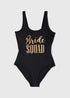 Introducing the elegant Black Bridesmaid Swimsuit, a perfect blend of style and comfort for any bridal party. Adorned with the golden “Bride Squad” inscription, this one-piece is designed to celebrate unity and excitement leading up to the big day. Made from high-quality materials, it ensures a flattering fit and enduring comfort, making every bridesmaid feel confident and chic.
