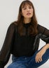 Learn moreSparkling, elegant, and oh-so-feminine, our button down blouse in black is the epitome of chic. Crafted from luxurious fabric with a metallic spot pattern all over, this blouse is sure to add a touch of fun to any occasion.