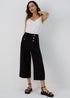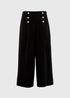 Elevate your style with our Black Button Front Trousers, a perfect blend of comfort and elegance. Crafted from premium fabric, these trousers offer a soft touch and a relaxed fit, ensuring you move with ease throughout your day. The high-waist design, adorned with gold-toned buttons, accentuates the waistline while offering a secure fit. The wide-leg silhouette gracefully flows down to a cropped length, showcasing versatility in style - making it an ideal choice for both casual outings and formal occasions. Pair it with a tucked-in blouse or a crop top to complete the chic look.