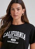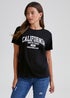 Learn moreThe perfect partnering piece for shorts and sandals on sunny holidays, this tee is sure to inject some cool style into your wardrobe. Cut with soft black fabric and easy short sleeves, it comes with a white 'California' slogan design for the ultimate colour contrast. Model Height: 5ft 9 1/2.