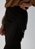 A cargo skirt works absolute wonders in a women's wardrobe. This skirt combines a flattering straight fit with the utility of cargo-style details, boasting two functional pockets on each leg. The classic black hue adds a touch of sophistication to your casual look while offering ample comfort for all-day wear. Effortlessly stylish and functional, this skirt is perfect for a blend of fashion and practicality in your wardrobe.