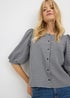 Classic with a modern twist, the Black Check Button Gingham Blouse is a timeless staple for effortless everyday style. Featuring a crisp black-and-white gingham pattern, this blouse is finished with a button-down front and relaxed silhouette, making it perfect for both work and weekend wear. The lightweight fabric offers breathable comfort, the cuffed sleeves add a touch of polish.