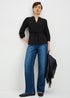 Sleek and flattering, this chic black shirt is designed to define the silhouette with effortless elegance. Featuring a waist-cinching tie detail, this piece creates a tailored look while maintaining all-day comfort. Crafted from classic clipper fabric, the 3/4 sleeves offer a versatile finish, making it perfect for year-round styling.