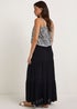 A simple yet stylish classic, make outfit building an absolute doddle when the weather turns nice with this statement maxi skirt. Created with comfy crinkle fabric and featuring a versatile black colourway, it comes complete with stretch and tiered detailing for that extra bit of feminine flair. Wear it with a cami top and sandals.
