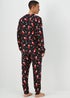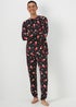Get in the mood to celebrate with this charming pyjama set. Cut with soft black fabric and adorned with dancing Santas, as well as crackers, the top is cut with cosy long sleeves, while the bottoms stretch at the waistband for easy movement on an evening. Finished with toasty cuffs and a straight leg fit, it's sure to get them into the festive spirit. Part of a matching range so the family can coordinate. Model Height: 6ft 1.