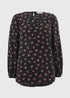 Black Ditsy Floral Popover Blouse