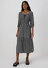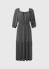 Learn moreElevate your spring-summer wardrobe with our Black Ditsy Floral Shirred Midi Dress, a captivating fusion of elegance and femininity. This chic midi dress exudes sophistication with its intricate white ditsy floral print, crafted in a rich black hue that flatters every complexion. The delicate shirring detail adds a touch of texture and dimension, creating a flattering silhouette that gently drapes over your curves. Pair with strappy sandals and a statement necklace for a chic summer look or add a denim jacket and ankle boots for a relaxed weekend ensemble.