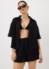 Black Double Cloth Co Ord Beach Shorts