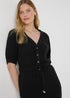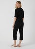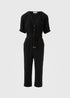 The Black Double Cloth Jumpsuit is a versatile and stylish addition to any wardrobe, perfect for those who appreciate comfort without compromising on style. This jumpsuit features a flattering V-neckline, short sleeves, and a button-down front that offers both ease of wear and a touch of elegance. The black colour is both neutral and chic, making it an excellent choice for various occasions. The garment cinches at the waist with a drawstring tie, creating a more defined silhouette while still allowing for relaxed movement. The double cloth fabric adds a luxurious feel and ensures durability, while the cropped length makes it suitable for pairing with your favourite shoes, from sneakers to heels. Whether dressed up or down, this jumpsuit is sure to become a go-to piece in your collection.
