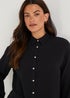 Learn moreNeed to look smart for a workday or important event? This comfy double cloth shirt has you covered. In a black colourway, the long sleeves are rounded off with stretchy cuffs. The buttons to the front provide practicality, while the sharp collar ensures a super stylish finish. Great for teaming with trousers and loafers. Model Height: 5ft 9 1/2.