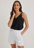 Say hello to versatile summer style with this sleek cami top. In a classic black, this lightweight flowing top features double strap detailing alongside a V-neck and back and half lining. Pair with smart trousers or a midi skirt for special occasions, or dress down with denim shorts and sandals for balmy summer days. Model Height: 5ft 9 1/2.
