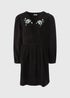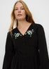 Add a touch of vintage charm to your wardrobe with this Black Embroidered Cord Collar Mini Dress. Crafted from a soft cord fabric, this dress combines classic style with modern elegance. The embroidered collar adds a delicate, feminine detail, while the mini length and flattering silhouette make it perfect for any occasion.