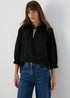 Learn moreElevate your wardrobe with the timeless charm of our Black Embroidered Tie Front Blouse. This elegant and versatile piece is designed to add a touch of sophistication to any outfit, perfect for both casual and formal settings. Features intricate floral embroidery along the neckline and sleeves, adding a delicate and stylish detail that stands out. The tie front design offers a trendy, adjustable fit. Featuring a tie neck detailing, cuffed puff sleeves and a relaxed fit. Pair it with skinny jeans, ankle boots, and a statement necklace for a chic and effortlessly stylish ensemble or dress it up with a pencil skirt, heels, and a clutch for a sophisticated office look.