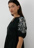 Learn moreThis elegant Black Embroidered Tiered Smock Dress is a must-have for any lady's wardrobe. Crafted from luxurious fabric, this dress exudes sophistication and charm. The smock design creates a flattering silhouette that effortlessly conceals any trouble spots, while the embroidered floral detailing adds a touch of fun and femininity. Featuring a elegant v-neckline, elasticated puff sleeves and free flowing silhouette. The versatile design makes it perfect for both casual and formal occasions. Pair it with heels and a statement necklace for an evening out, or dress it down with sneakers and a denim jacket for a relaxed daytime look.