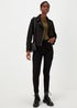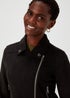 Learn moreBring some edge to your outerwear collection with this chic biker jacket, fashioned with faux suede fabric. Styled in classic black, it comes with a sophisticated silver zip up front and matching zip pockets for security. Also detailed with glam studs, it's sure to partner perfectly with so many outfits.