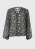 This button-up blouse in a classic black hue is adorned with a delicate floral pattern, adding a touch of elegant femininity to your wardrobe. With long sleeves, it effortlessly combines style and comfort, making it suitable for various occasions.