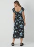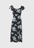 Learn moreThis elegant dress combines comfort and style effortlessly. The charming floral pattern in shades of blue and green stands out against the classic black background. With flutter sleeves adding a touch of whimsy, and a versatile midi length, this dress is perfect for both casual and formal occasions. Its figure-flattering silhouette ensures a comfortable fit that’s sure to turn heads. Whether paired with heels for an evening out or sandals for daytime wear, this dress is a must-have addition to any wardrobe.