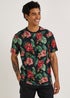 Learn moreNothing quite says summer like this dapper T-shirt! Styled with a black base for easy outfit building, it features an all-over floral print for an eye-catching touch, a crewneck for ultimate comfort and relaxed short sleeves for added practicality. Crafted with a super soft fabric, simply pair with your favourite shorts for a trendy finish. Model Height: 6ft 1.