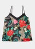 Exuding charm, thanks to the classic floral and jungle animal prints, this pyjama top doesn't skimp on luxurious comfort, either. Made from silky satin, it provides a soft and smooth touch for a good night's rest. Perfect for bedtime, the slim straps and V-neck bring feminine flair to the look. Matching pyjama bottoms available S2964038_C101. Model Height: 5ft 9.