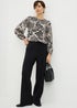 Update your wardrobe with this charming floral blouse, crafted from lightweight fabric with added stretch for comfort. Featuring a large black floral print and contrasting cream-coloured base, additional details include a lightly gathered crew neckline and cuffed long sleeves. An extended scoop hem at the back offers a delicate, feminine silhouette.